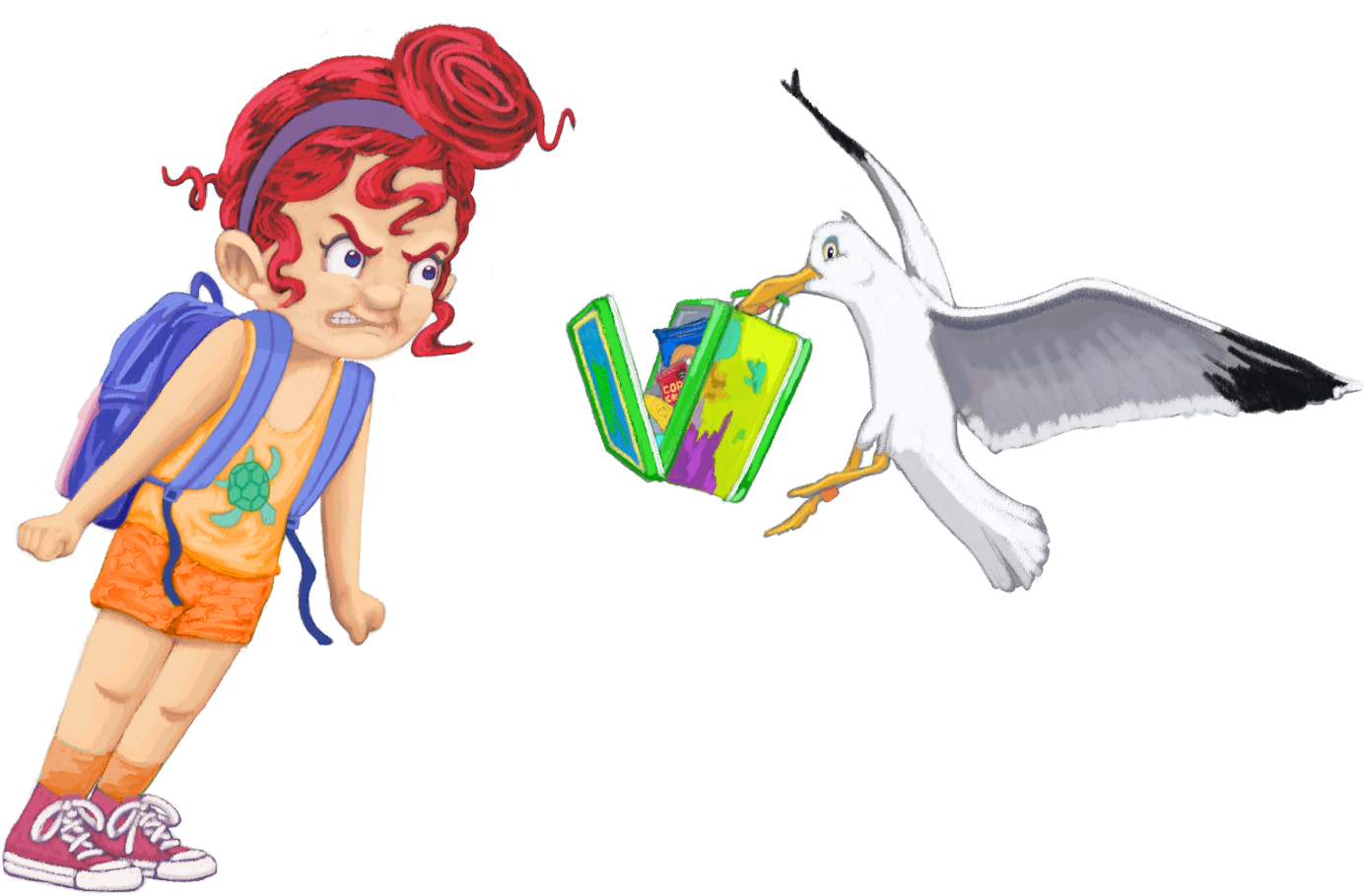 As a father of three lovely young ladies, I’m partial to the power of plucky little girls. I love characters that are tenacious and find courage in spite of the obstacles they face. First grade is a time when the imagination of young people begins to open up to the possibilities of story, and I enjoy when stories take unexpected turns. Rosie is a wonderful example of fiery determination. She is not afraid to respond to her emotions, whether it’s pure joy at the thought of seeing her favorite animal or the horror that a bird would have the audacity to take her lunchbox. She is present in the moment, and I believe readers can relate to Rosie’s uncertainty about what to do in this situation. Although I’ve never had a seagull steal my food, I have experienced times when life has thrown me a curve ball. Whether you’re six or sixty, no one is prepared for the unexpected when it happens to you. We are lucky that Rosie shows us all what not to do when it happens.